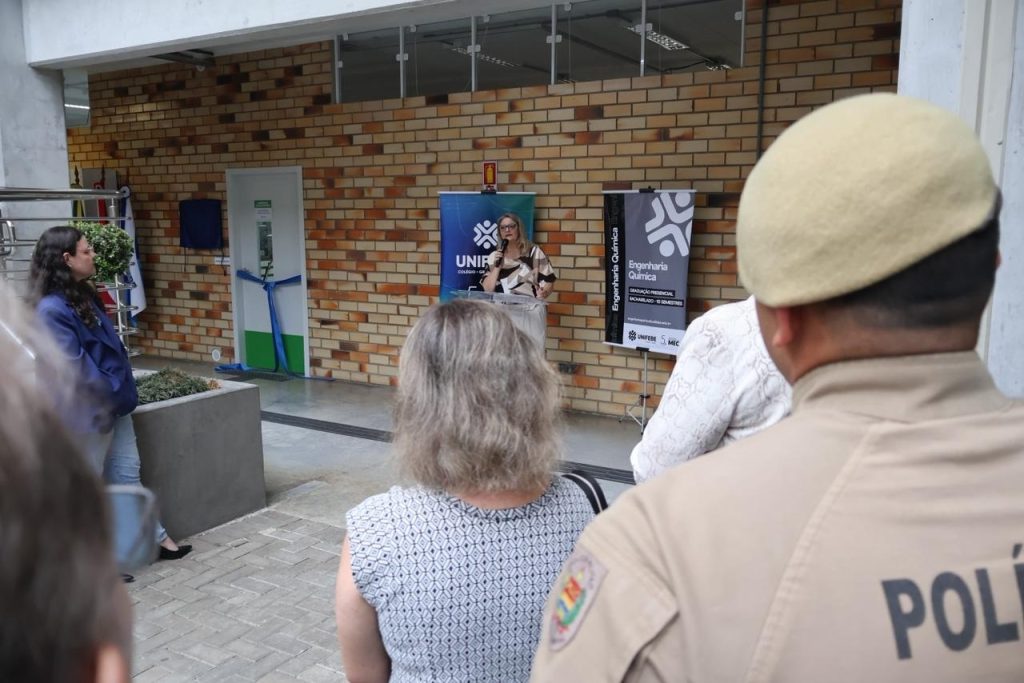 No ato, representando o presidente da Fapesc, Fábio Wagner Pinto, a diretora de Ciência, Tecnologia e Inovação da Fundação, Valeska Daniela Tratsk, destacou que a inauguração do laboratório dedicado às águas é uma resposta direta a uma das necessidades mais urgentes da região. Valeska enfatizou que em Brusque e em todo o Vale do Itajaí, a gestão da qualidade da água, o monitoramento dos rios e a prevenção de impactos ambientais são temas que fazem parte do dia a dia da população, das prefeituras e das indústrias.
