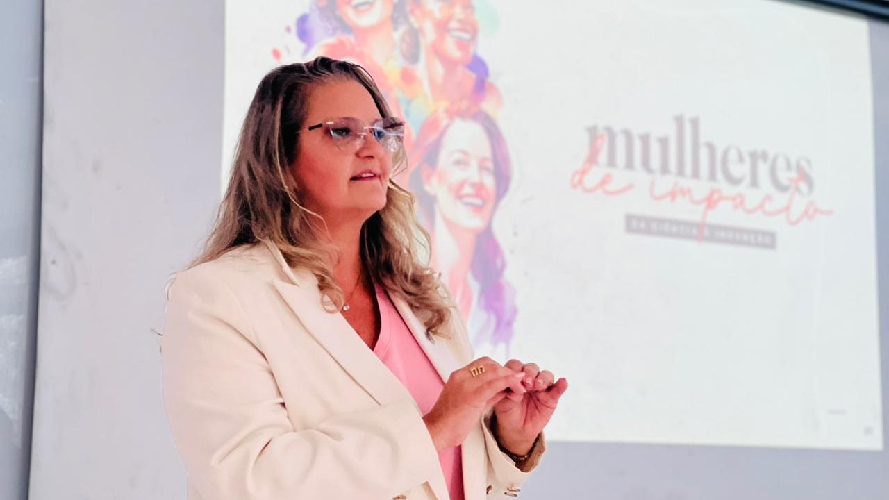 Durante a explanação, a diretora de CTI da Fapesc, Valeska Daniela Tratsk, destacou dados do relatório “Mulheres de Impacto: da Ciência à Inovação em Santa Catarina”, que traz informações sobre a participação feminina na ciência, tecnologia e inovação no Estado. (Foto: Cecom/IFC Blumenau)