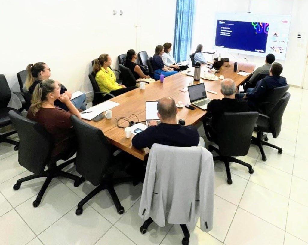 Participaram presencialmente, na sede da Fapesc, a diretora de Ciência, Tecnologia e Inovação, Valeska Daniela Tratsk, membros da Gerência de Inovação, da Gerência de Prestação de Contas e os três proponentes responsáveis pela execução dos programas aprovados em edital com investimento global de até R$ 2 milhões para estruturar e conduzir as iniciativas.